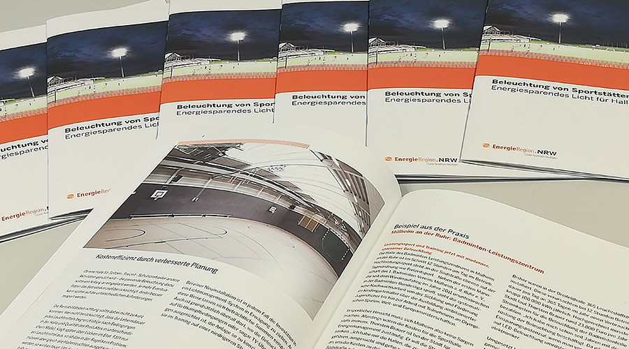 "Beleuchtung von Sportstätten - Energiesparendes Licht für Halle und Platz" ist der Titel einer neuen Broschüre, die jetzt von der EnergieAgentur.NRW herausgegeben wurde. Darin geht es vorrangig um Möglichkeiten, Innen- und Außenanlagen mit moderner LED-Technik umzurüsten unter besonderer Berücksichtigung der jeweiligen Anforderungen der jeweiligen Sportart. Verschiedene Beispiele aus der Praxis zeigen zudem auf, auf welche Weise bereits Projekte erfolgreich umgesetzt werden konnten. Zudem gibt es Links zu Möglichkeiten der Finanzierung. Wer sich für das Thema interessiert, kann die Broschüre kostenlos bei uns bestellen. E-Mail an Diese E-Mail-Adresse ist vor Spambots geschützt! Zur Anzeige muss JavaScript eingeschaltet sein! genügt!