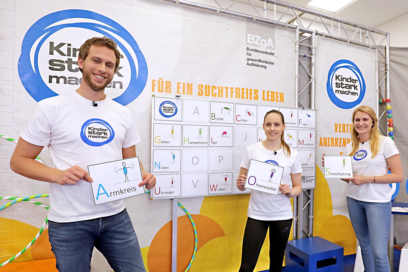 Das „Kinder stark machen“-Team der Bundeszentrale für gesundheitliche Aufklärung (BZgA) bringt zusammen mit Kunstturnerin Sarah Voss das ABC in Bewegung. In insgesamt fünf Folgen werden unter dem Motto „Bewegung macht stark“ zu jedem Buchstaben passende Übungen vorgestellt. Anschließend werden mit den erlernten Buchstaben ganze Wörter gebildet.