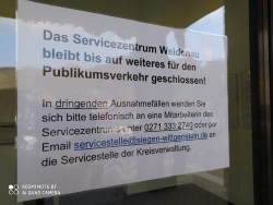 Das Service-Zentrum des Kreises Siegen-Wittgenstein, in dem sich auch die Geschäftsstelle des Kreissportbundes befindet, ist aufgrund der Corona-Ausbreitung bis auf weiteres für den Besucherverkehr gesperrt. Wir sind aber weiterhin telefonisch (unter 0271/41115) oder per Mail (Diese E-Mail-Adresse ist vor Spambots geschützt! Zur Anzeige muss JavaScript eingeschaltet sein!) erreichbar.
